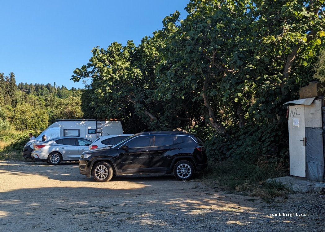 : Grassy with bits of shade, good if traveling with a dog. Easy access for larger campers . Transport links to both sides of the city. Guarded. -: Despite large sign saying 50tl per day they now ask for 300 for overnight stays. Not sure if this is a price raise or just staff members trying to scam. No facilities, toilet says staff only. Basically a parking area that now has campsite prices.