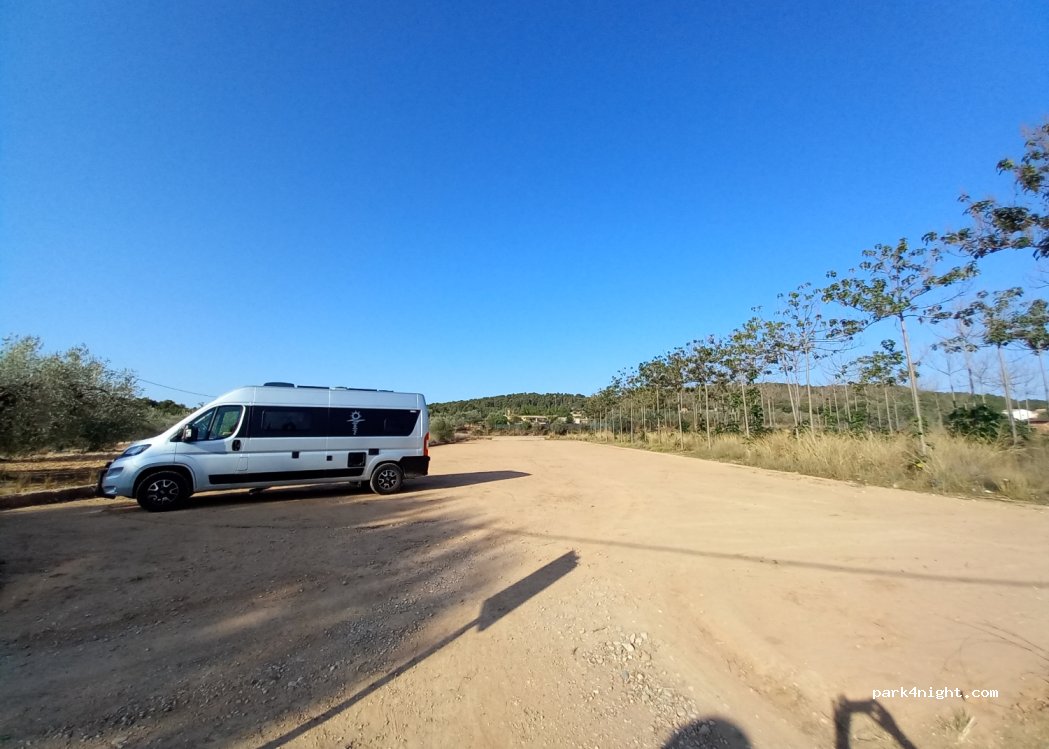 Level and fairly large municipal dirt car park. There is no sign prohibiting motorhomes, although the access road is narrow and unpaved. It is a car park set up for the La Pea bathing area. I spent the night without noise and very quiet, on weekends I suppose it will be more crowded