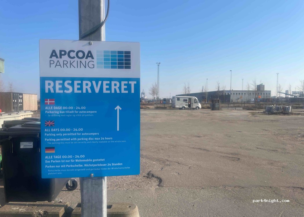 ¡Nuevo lugar en la ciudad de Aarhus! No utilices el lugar para tirar nada - ¡no está permitido! De un aparcamiento de pago, se ha separado una parte como aparcamiento gratuito para los campistas. Limitación de estancia a 24 horas (disco de estacionamiento). Sin suministro ni eliminación. La calle vecina es tranquila por la noche. ¡Cerca del puerto y de las famosas parrillas de Perlas! A poca distancia del centro en 20 minutos.'