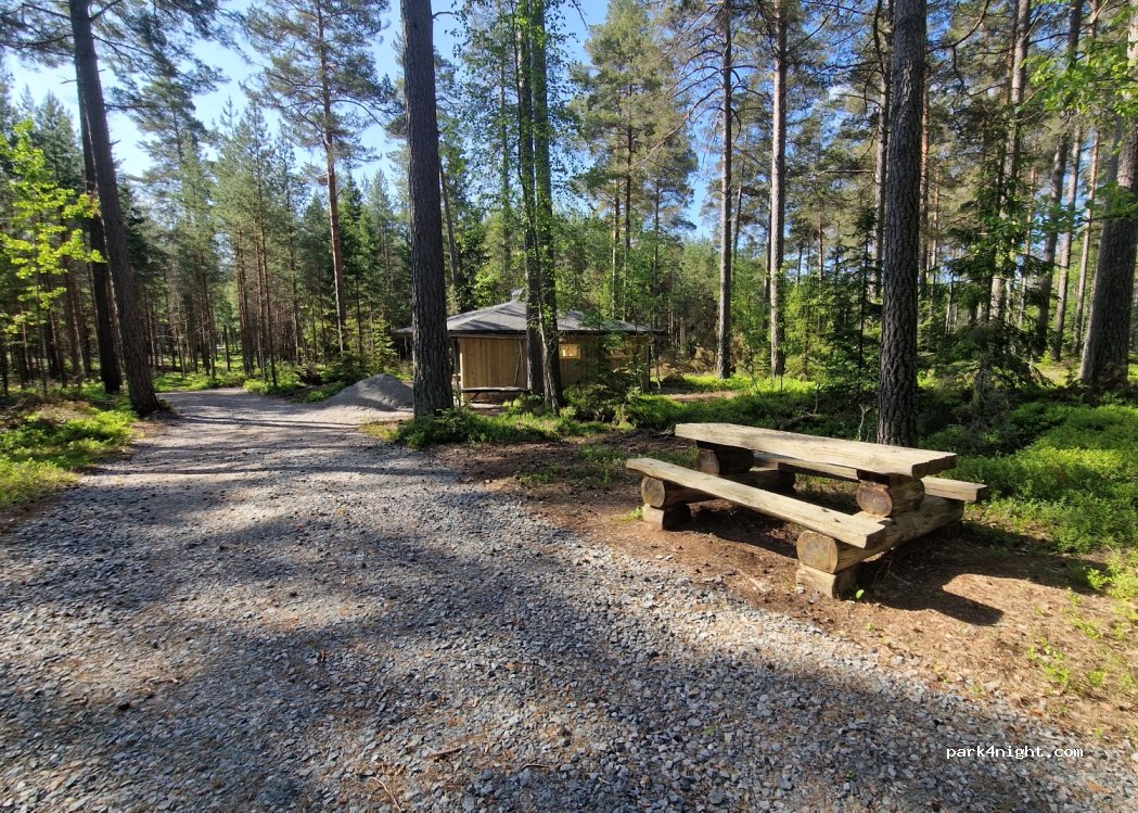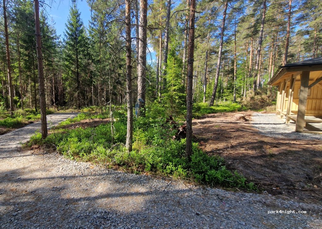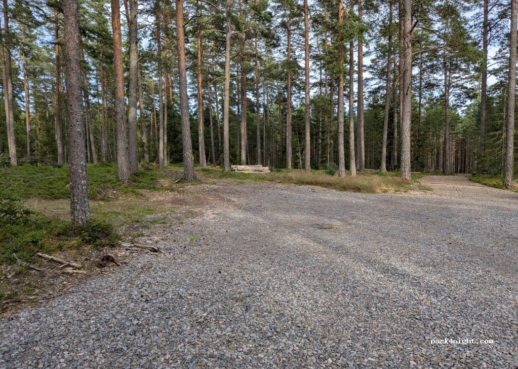 En pleine fôrêt magnifique ! Parking en graviers, avec une grande cabane juste à côté, visiblement tout neufs. La route à côté n'est pas très passante. Pas de panneau d'interdiction. Très calme, nous avons passé une excellente nuit ! Pas de poubelle (pour l'instant). Un peu de moustiques.