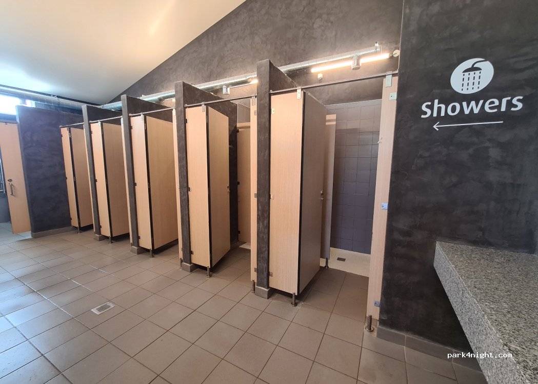 An der Rezeption wurden wir freundlich empfangen. Die Dame spricht fliessend Französich und Englisch. Die leicht schrägen Plätze lassen sich mit Keilen ausgleichen, es gibt aber auch ebenere. Kinderwaschbereiche gibt es bei Frauen und Männern, die insgesamt sehr neu und sauber sind. Was will man also nochmehr zum Preis von ca. 20,-€ f. 2 Personen (ACSI) ????