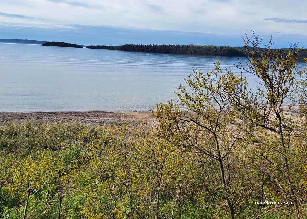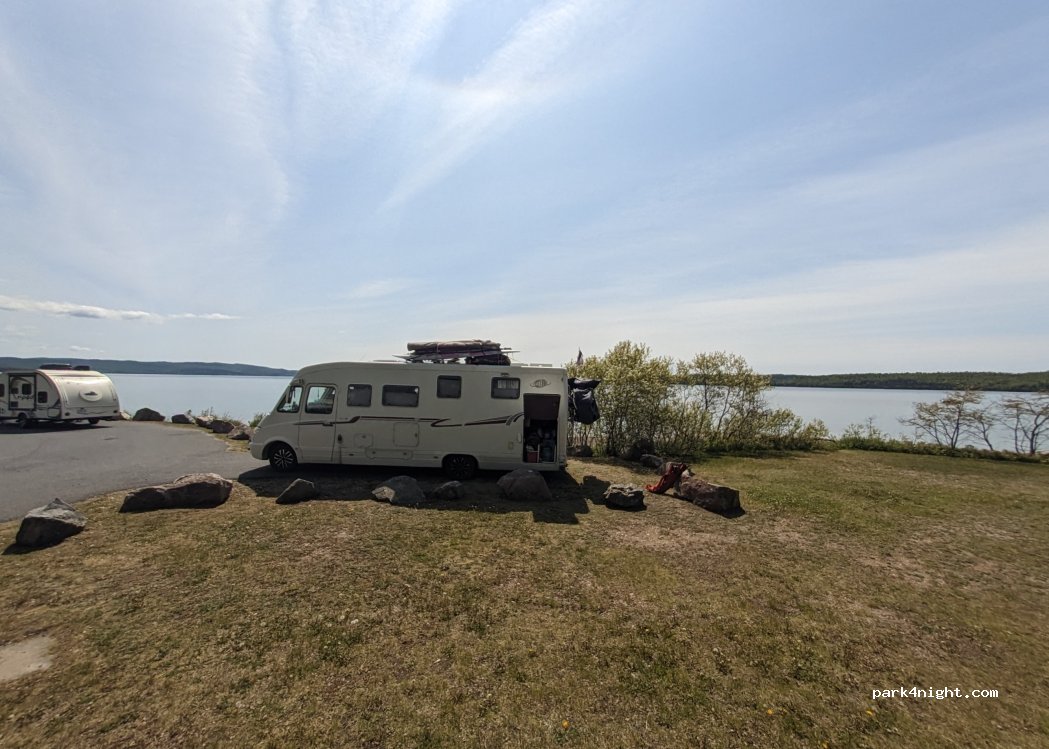 Endroit très beau et calme près de l’autoroute. Possible de stationner un VR de grande taille (29 pieds) pour la nuit. Tables de pique-nique et plage. Belle vue du lac Supérieur. Toilettes sèches très propres avec du papier de toilette en quantité. Purel disponible.