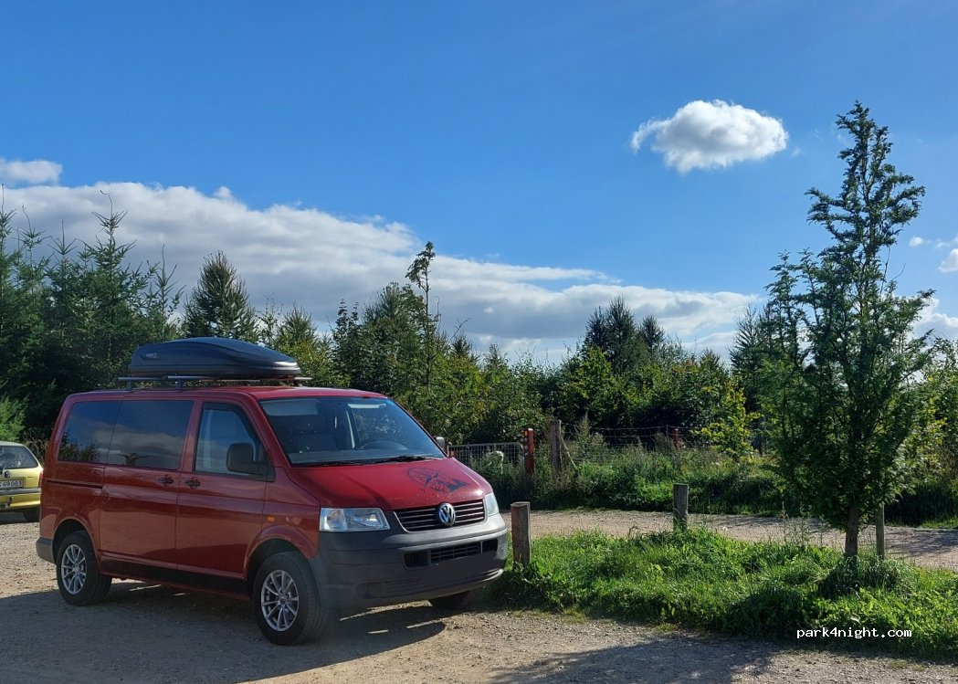 Parkoviště obklopené přírodou, v dálce jde slyšet dálnice, ale je tu kohoutek s vodou. Jinak klidné místo. Přes den přijíždí hodně lidí se psy, ale nikdo neměl problém s naším campováním.