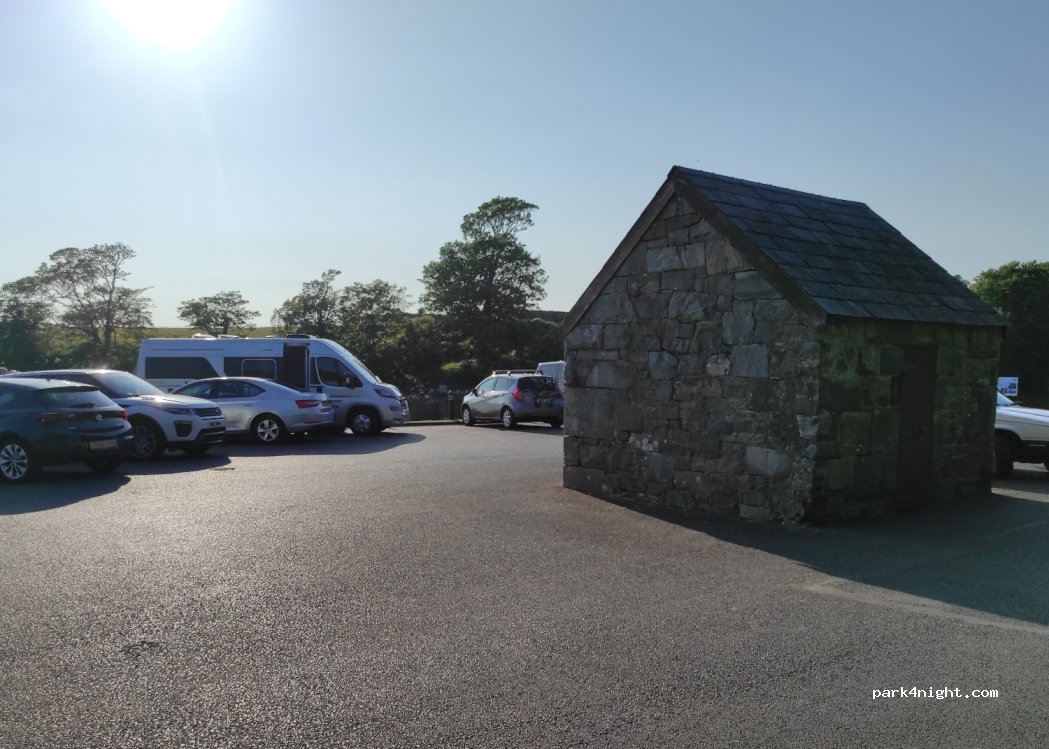 Nice wee car park, snack/coffee van here in the morning. Public toilets in the Anglers association building open during the day. Very busy in the evening with locals going to enjoy the local park which is definitely worth a walk around. Quite a bit of history in the area also from Amazing Grace to Wolfe Tone