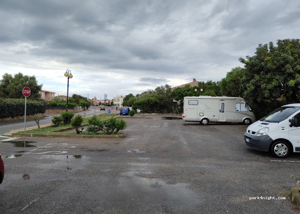 Free parking. We arrived at 9pm, had dinner and spent the night. There were several caravans staying overnight in this park too. Quiet area with good lighting close to the restaurants and bars of San Teodoro, where you can park and walk.