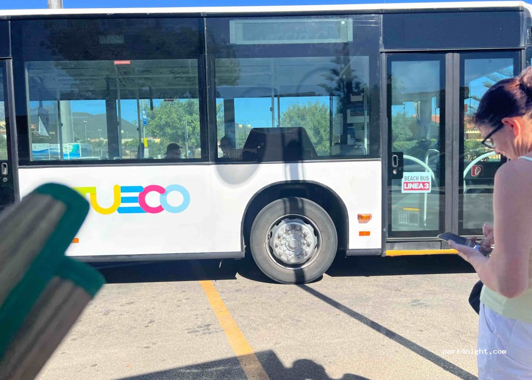 Excelente. Es sólo un parking. Se toleran las acs, es gratuito y tranquilo. Menos de 10 minutos andando al centro que tiene mucho ambiente nocturno. A menos de 5 minutos andando de la parada de la línea 3 del beachbus que lleva a las calas, incluida brandinchi. El billete de ida y vuelta vale 8 euros y los horarios están en internet buscando “beach bus san teodoro”. Cuiden este lugar y no abusen.