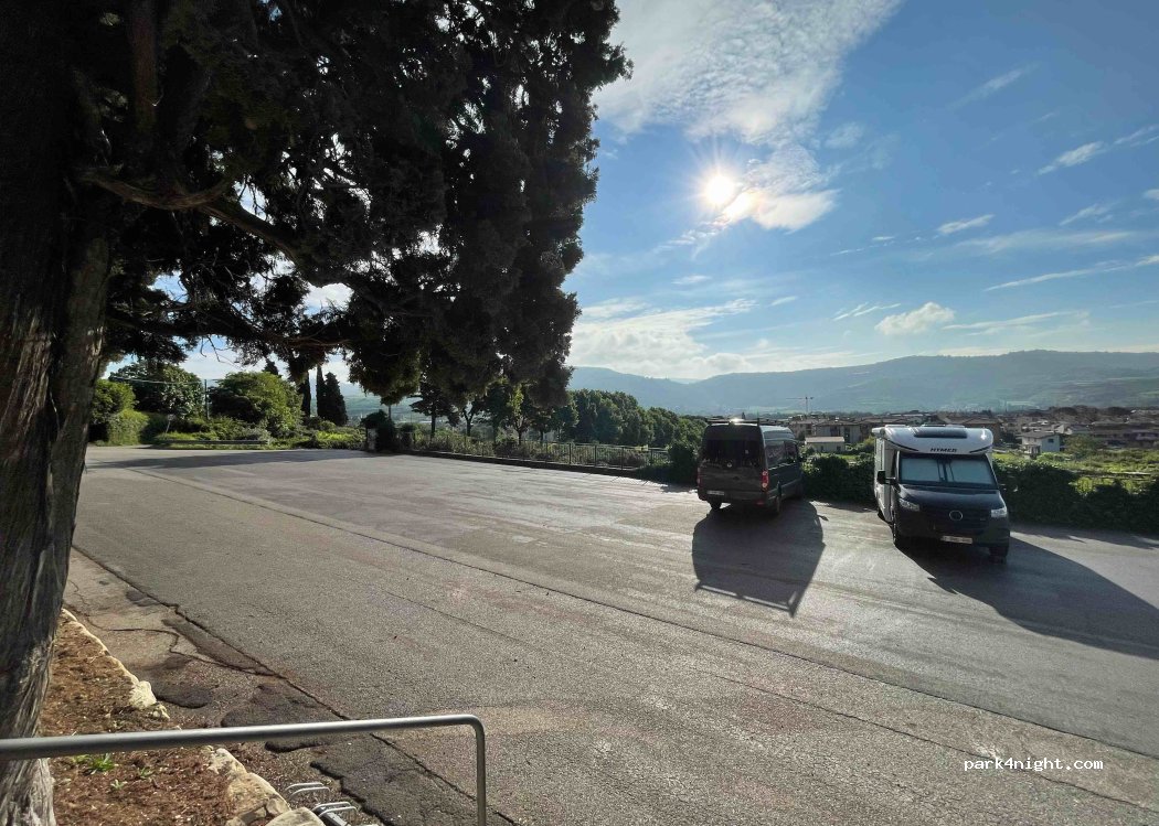 Ampio parcheggio (piuttosto in pendenza). Puoi iniziare alcune passeggiate da lì.
