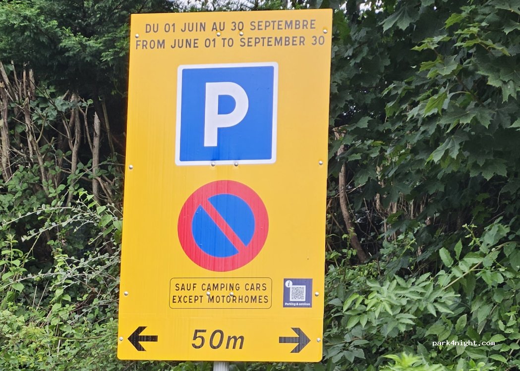 Großer Parkplatz für Wohnmobil auch als solcher gekennzeichnet mit Erlaubnis zum übernachten. Es liegt zwar mehr oder weniger direkt and der Straße ist aber dennoch ruhig da wenig Verkehr herrscht. Parkplatz ist außerdem fast gerade, schattig und mit bisschen Wiese.
