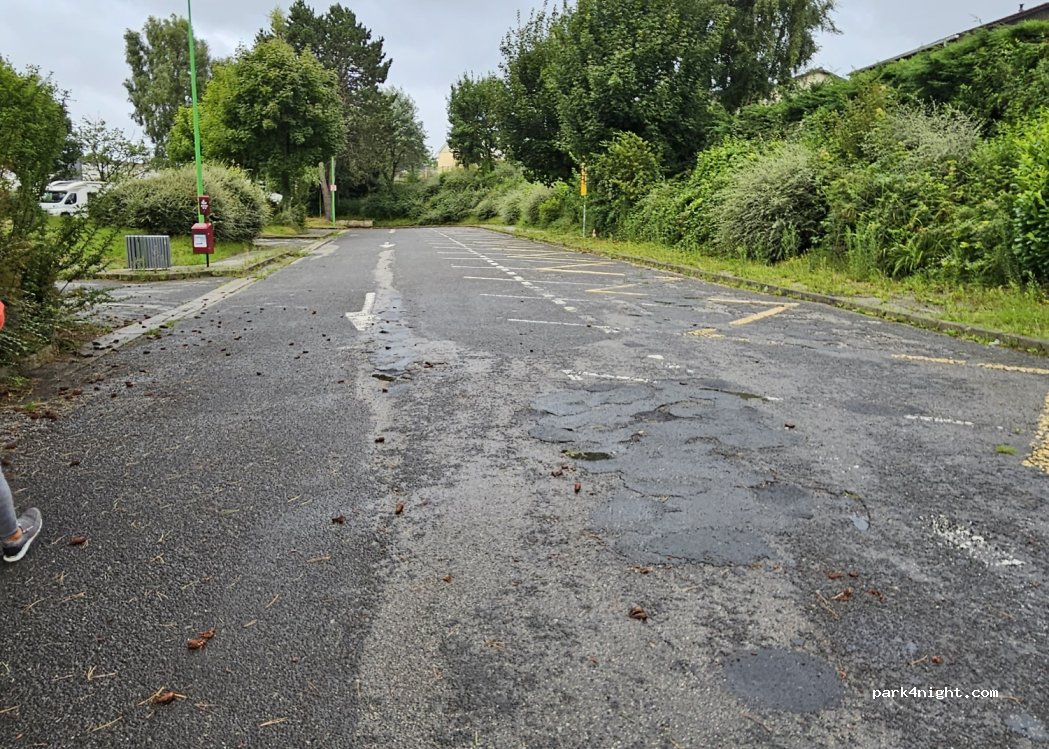 Emplacement propre, et gratuit. Poubelles à proximité. Un peu bruyant. À éviter en période scolaire, dar un collège est en face de l’aire. Pratique pour aller visiter le Havre.
