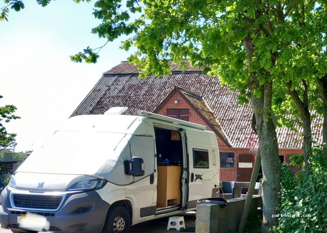 Peaceful little campsite, very nice owner. If your van isn’t equipped with shower/toilet you can use one in the host’s house (for free).