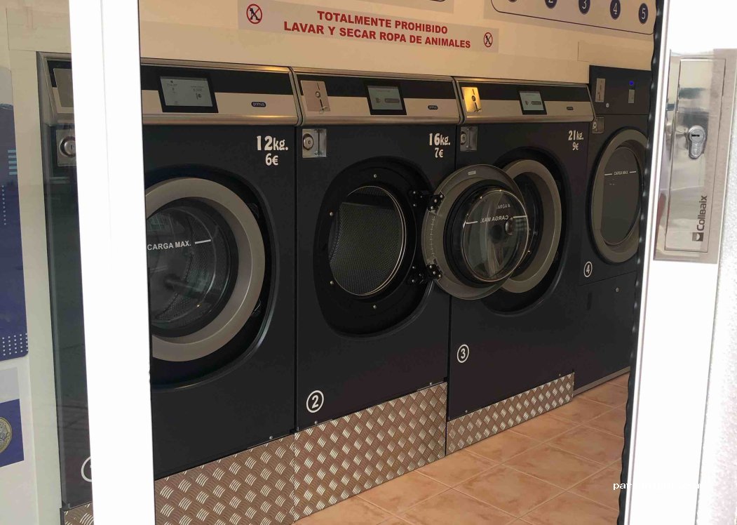 Lavanderia con 3 lavadoras y 3 secadoras, a 5 min de un parking grande y a 5 min del centro de la ciudad. De 7:00 a 23:00 h.