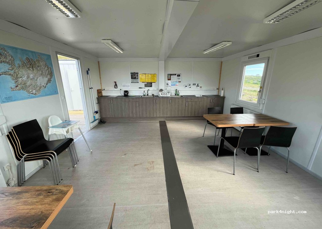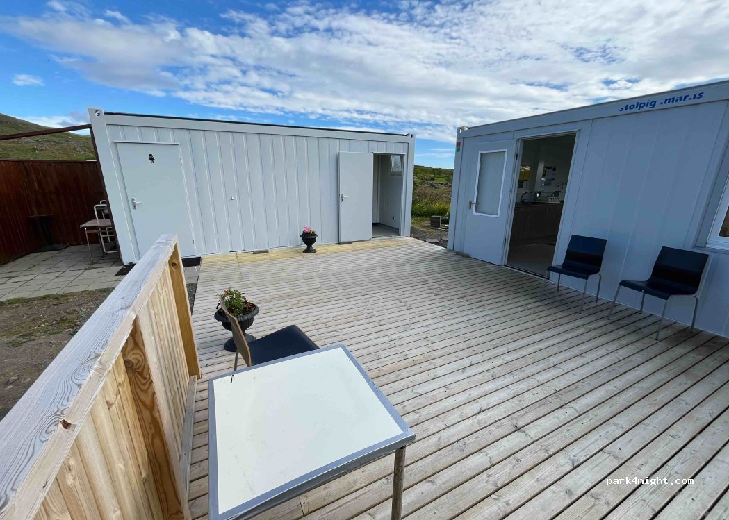 Vaste terrain en espalier avec vue sur le fjord et Grimsey mais pas toujours plat. Salle commune largement vitrée très agréable et bien chauffée. Piscine municipale très agréable à proximité. Impression d’être au bout du monde. Propre. Accueil agréable de la propriétaire qui vient se faire payer vers 19h.