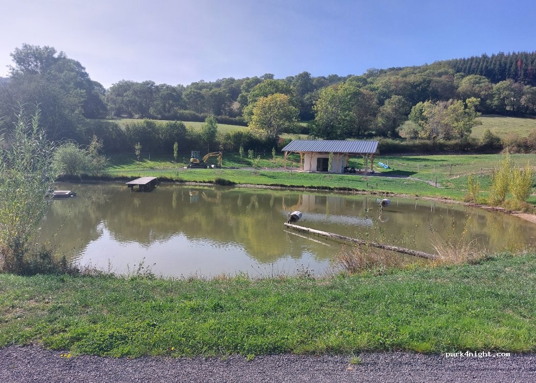 Superbe arrêt dans un petit coin tranquille, au bord d'un étang où il est possible de pêcher la truite. Soirée au soin du chant des grenouilles et au rythme du tire bouchon de Jean-Marc, qui nous a magnifiquement accueilli avec sa femme. Très bonne soirée, discussions et vins Nous leur avons acheter du vin car, blanc comme rouge, ils sont très bons. A connaître absolument, nous recommandons