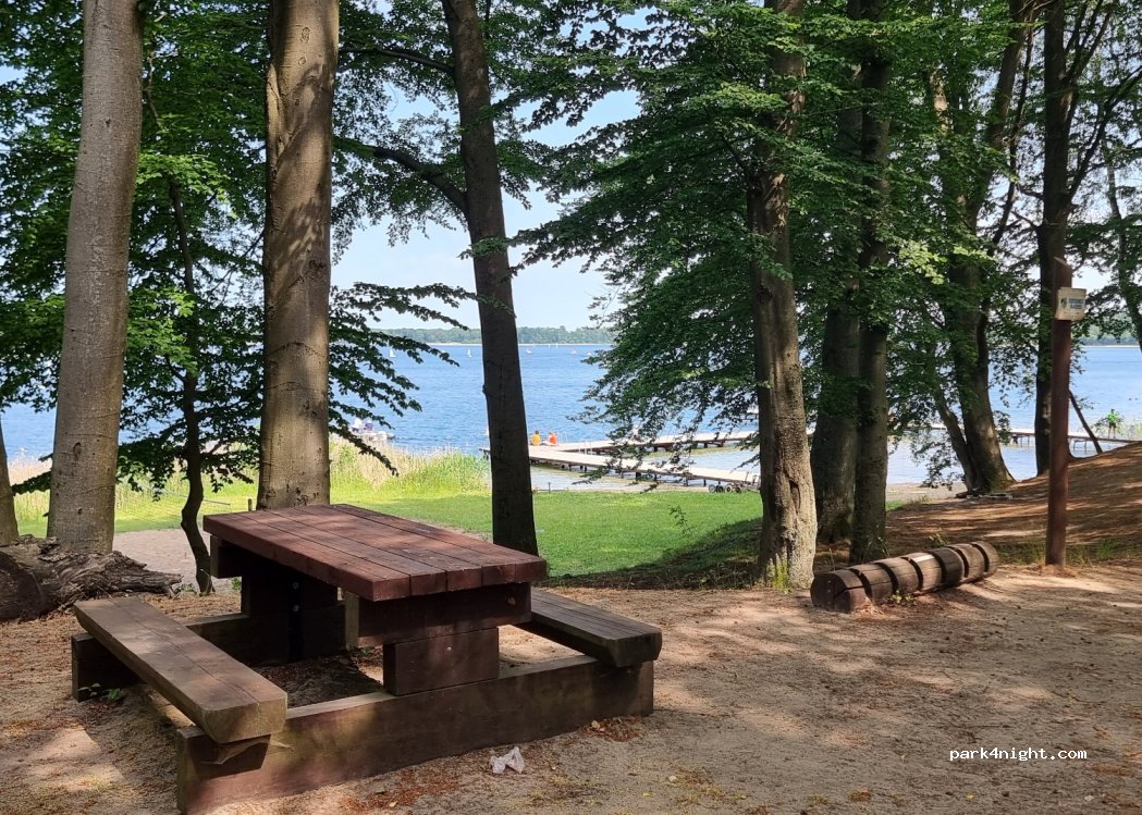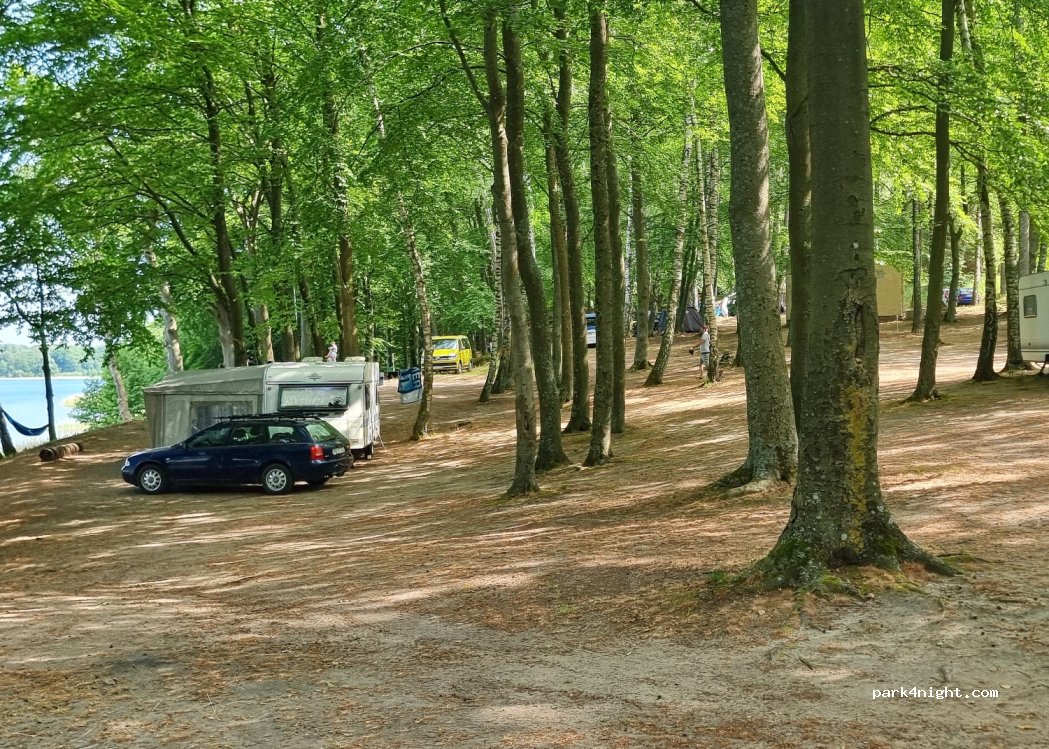 Nice campsite. You can park whenever you like. A huge area on an island on a lake. Very clean lake, a divers base on a campsite.