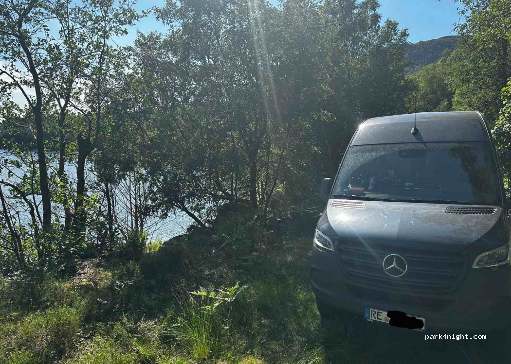 Der Platz ist Ordnung für eine Nacht. Es fahren halt viele Autos vorbei, da oberhalb die Straße ist. Man wird von der Straße aus aber nicht gesehen und hat Seeblick. Wenn man die Einfahrt von der Straße runter fährt, noch ca. 50m geradeaus. Dort finde ich es am besten. Man muss dann aber wieder rückwärts raus. Ist aber kein Problem.