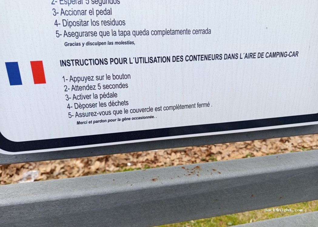 air conforme électricité grt eau payante pas tester belle balade autour poubelle avec mode d emploi en français pour les camping car je recommande