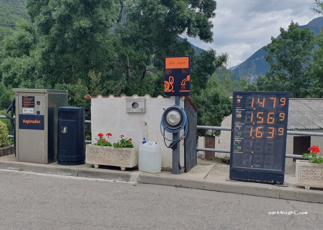 Drinking water tap at Repsol fuel station by air pressure machine. Strong pressure. Ask attendant first.