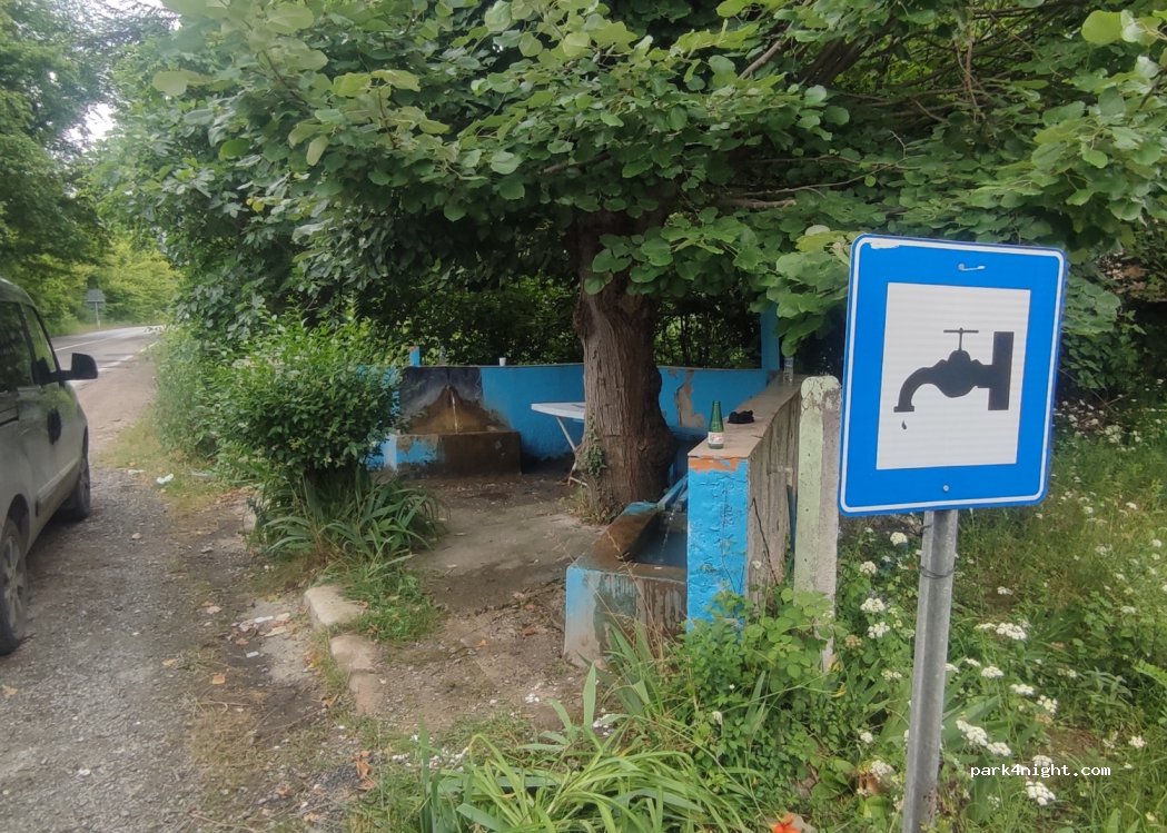 Continuously flowing cold natural spring water. It can be safely consumed and filled into the vehicle.