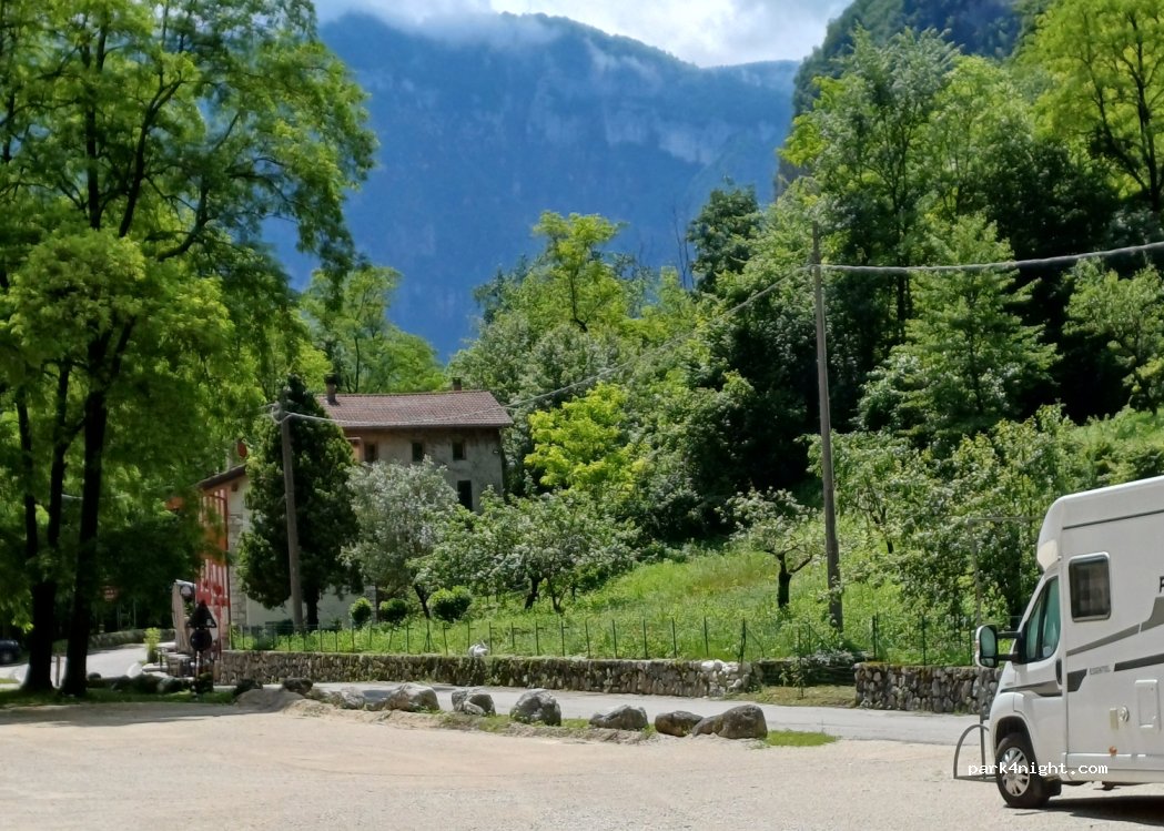 Großer Parkplatz neben der Pista ciclabile della Valsugana. Tagsüber Verkehrslärm, nachts auch etwas. Richtung Trient schöner Radweg, aber ab Primalona (5km) dort entlang der Straße. Nach Balsano abwechselnd Straße und Radweg. Pizza im Restaurant ist köstlich.