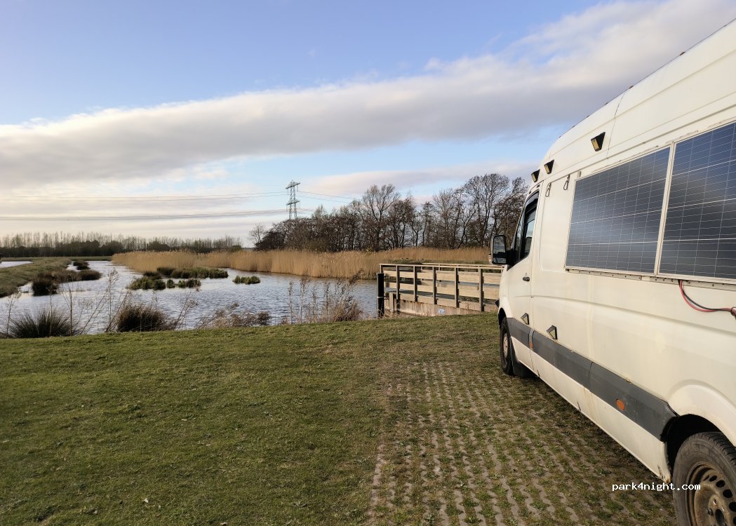 Rastplatz mit Picknicktisch am Eingang von De Zeven Gaten. Von hier aus können Sie Rad fahren, durch das grüne Herz wandern ... mit wunderschöner Flora und Fauna im Polder. Liegt in der Nähe einer viel befahrenen Straße