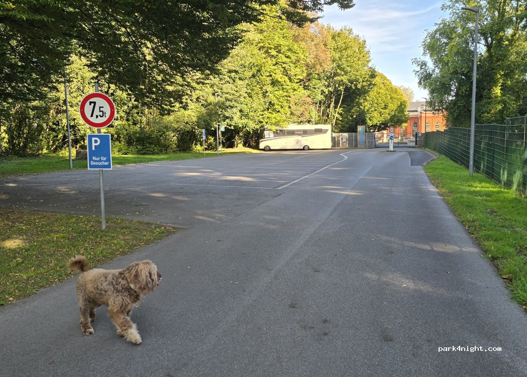 Asphaltparkplätze für Besucher des Wasserturms. Ruhig in der Nacht, obwohl nebenan eine Bahnlinie gelegen. Keine Dienstleistungen