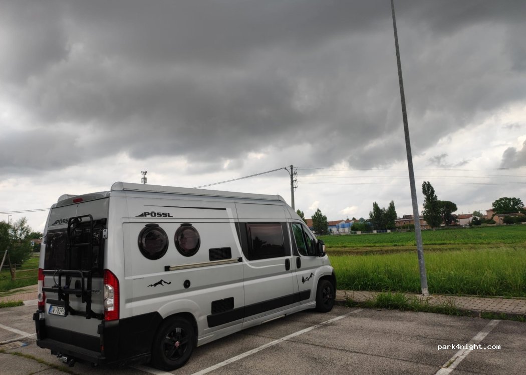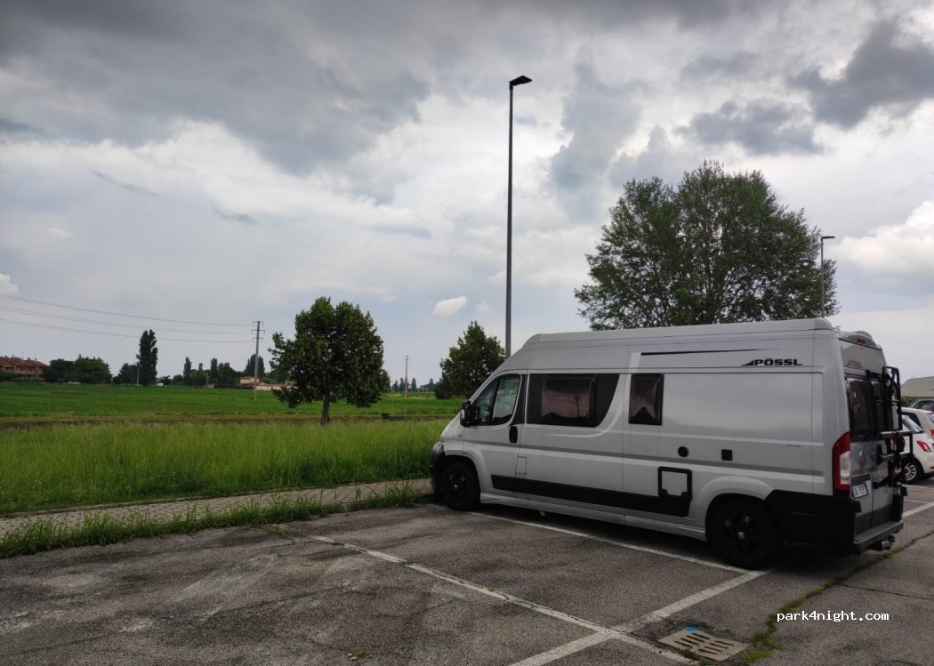Excellent parking pour visiter la ville de Ferrare. calme et entouré de verdure. A 10 minutes à pied des remparts de la ville et non loin d'un grand supermarché Interspar avec service de laverie automatique. Toujours quelques minutes pour rejoindre les bars et les boutiques.