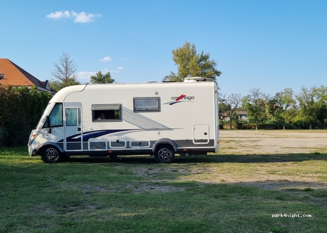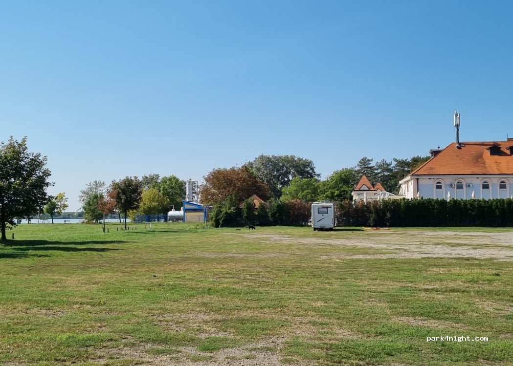 Large parking place next to lake. Close to pleasant park with many cafes, a restaurant, a playground and a zoo. Ideal for rest, if you travel with kids. You can stay here overnight.