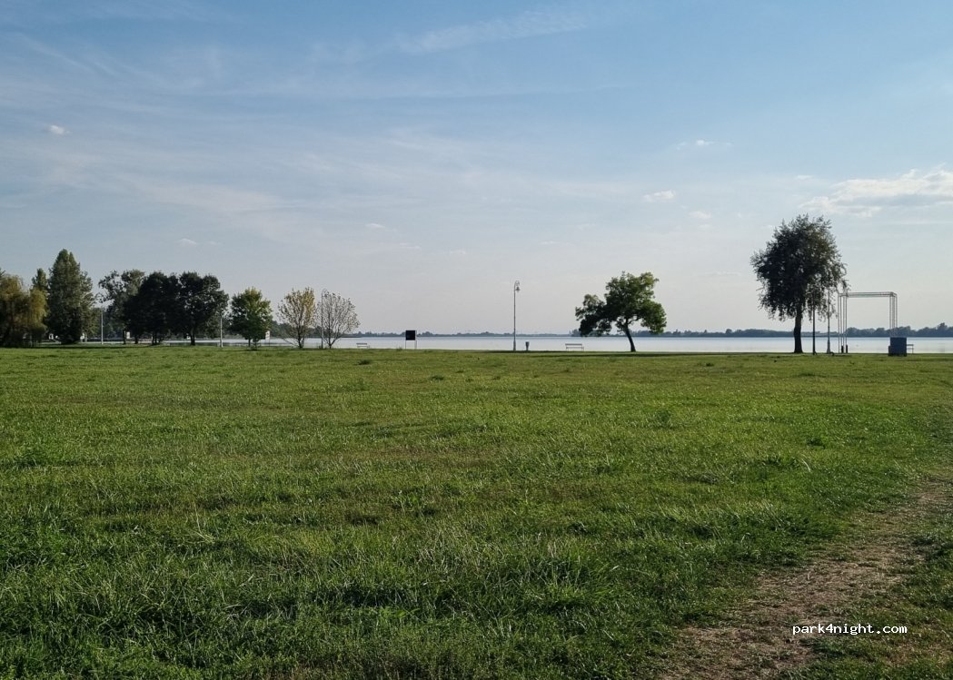 Großer Parkplatz neben dem See. In der Nähe liegt ein schöner Park mit vielen Cafés, einem Restaurant, einem Spielplatz und einem Zoo. Ideal zum Ausruhen, wenn Sie mit Kindern reisen. Sie können hier übernachten.