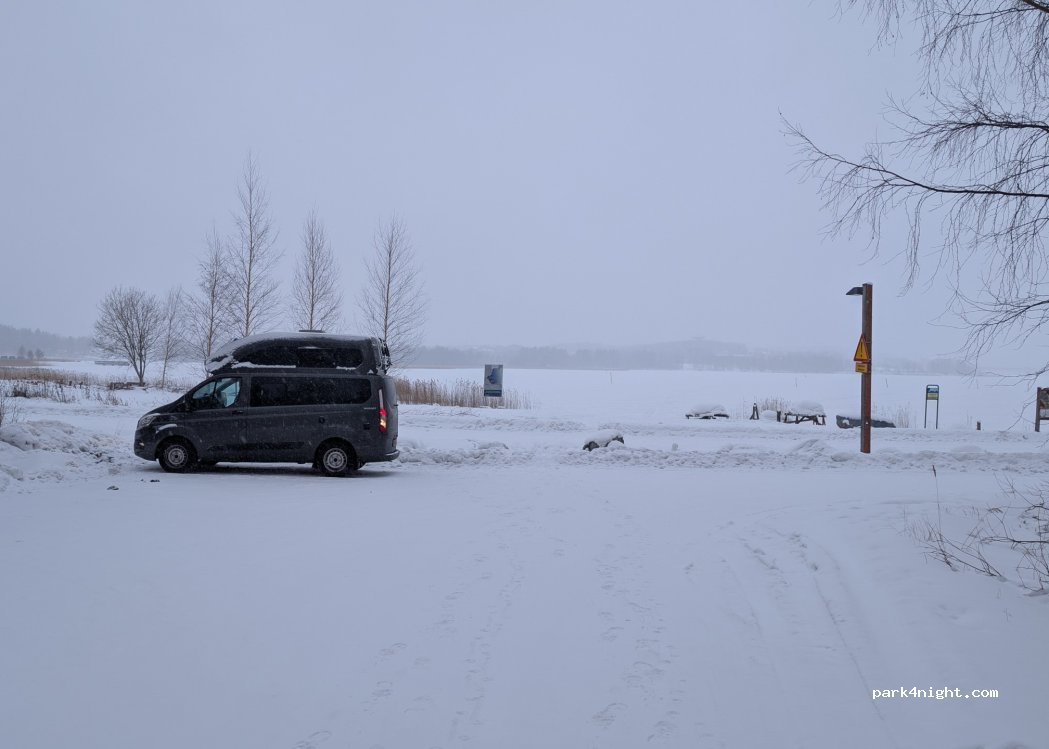 Local free parking lot. Good to stay over night. Coated walking way that goes by the lake. Swimming place close near by. Good view to city of Jyväskylä