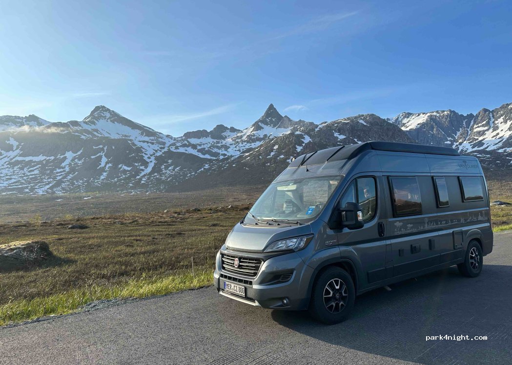 Prima plek voor een eerste overnachting na aankomst met de ferry vanaf Senja. Je hebt mooie uitzichten over de bergen. Het ligt wel direct aan de weg en er wordt hier vrij hard gereden.