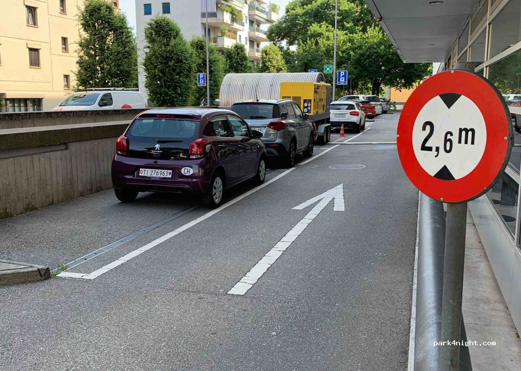 Super Parkplatz, um in die Stadt zu laufen. Fußweg etwa 20-30 Minuten. Haben für 3h nur 2,06CHF bezahlt.