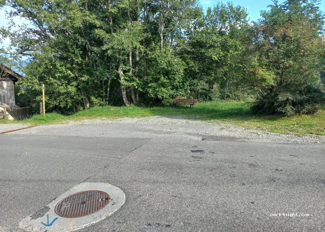 Petite place au bord de petite route, en sortie de zone de chalets. Aucun intérêt et peur de gêner, nous ne restons pas. Photo jointe pour info.