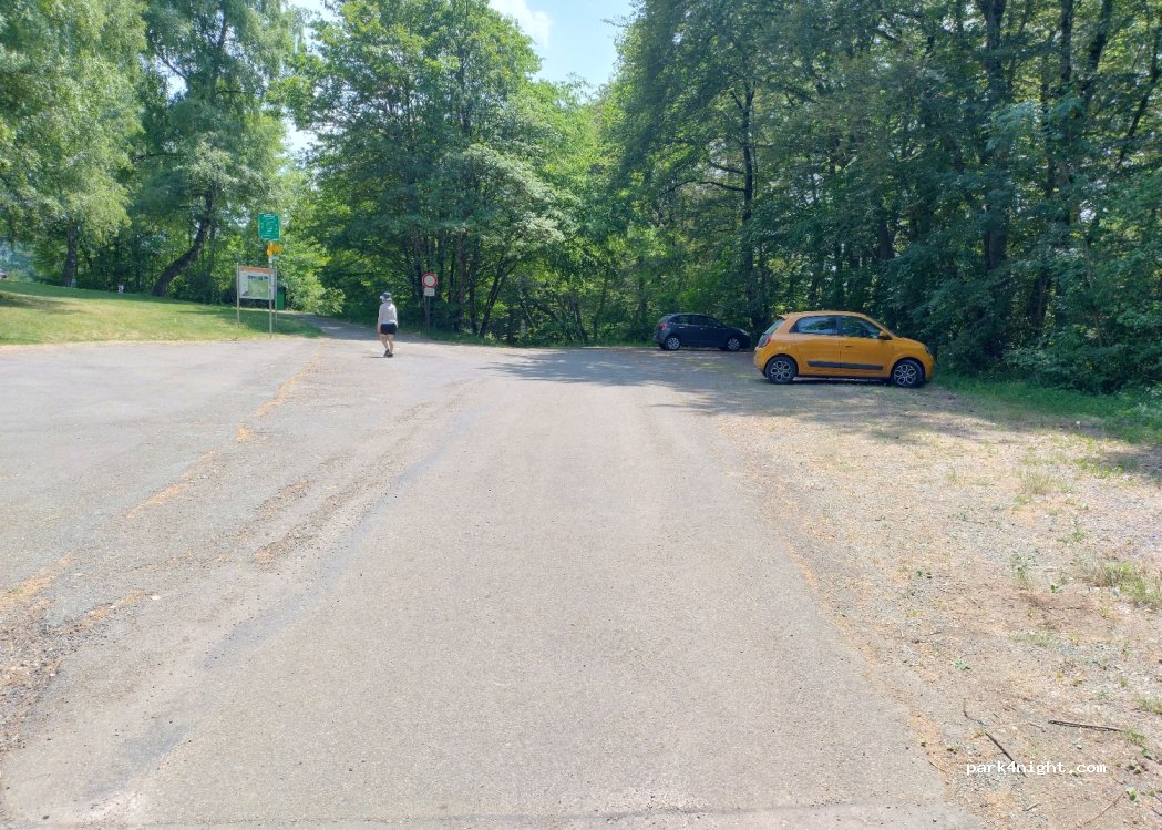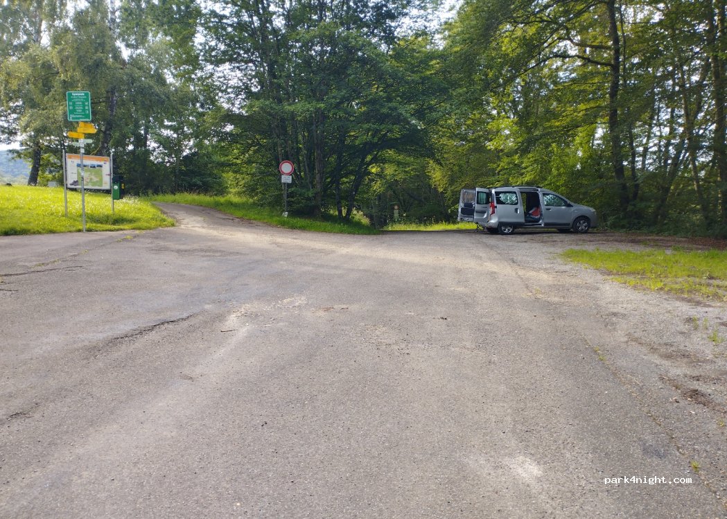 Parking assez vaste au bord d'une toute petite route et de jeux pour enfants. Nous n'avons vu absolument personne, c'est très très paisible. A 15 min du château de Hohenzollern. Pas de services. Route d'accès plutôt étroite.