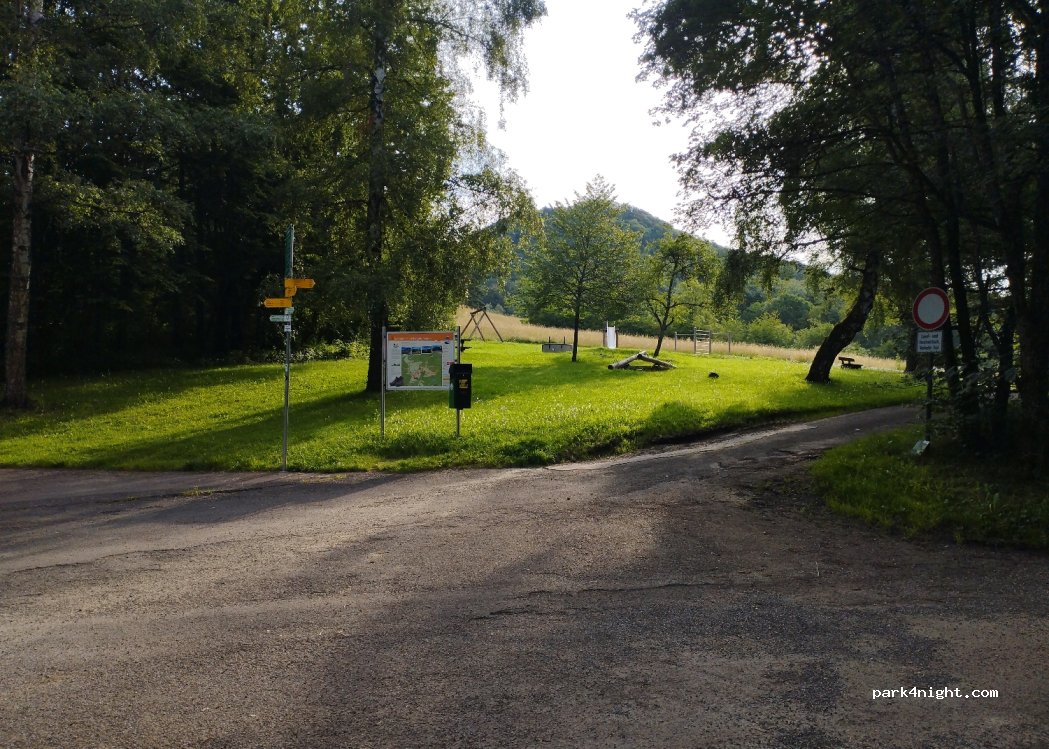 Parking de randonnée à l'aire de jeux. L'endroit est un peu excentré. Un peu solitaire la nuit. Nous avons fait une randonnée passée n'y sommes pas restés nous-mêmes.