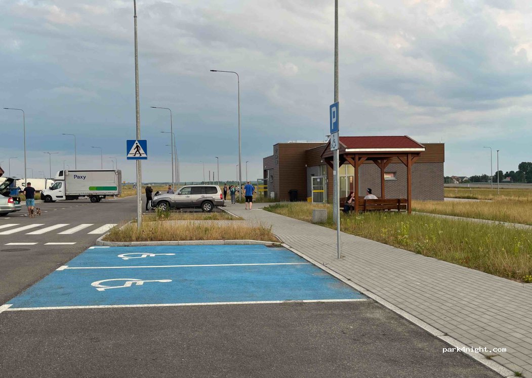 Buen lugar para cambio de aguas sin necesidad de abandonar la autopista viajando entre Polonia y Lituania. El grifo de agua está en el lateral del edificio, lado de WC de mujeres, y se necesitan bastantes metros de manguera para superar la acera. Para dormir es posible alejarse al fondo y amortiguar un poco el ruido de la super transitada autopista...