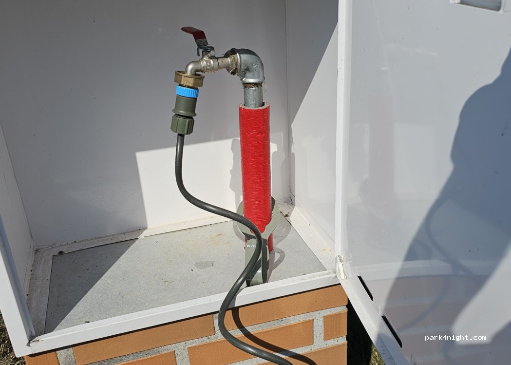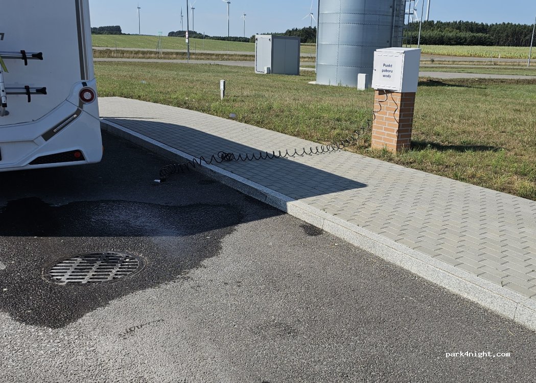 Super miejsce można nocować zrzucić szarą do kanalizacji napełnić czystą wodę wziąć prysznic. Bardzo czysto i schludnie