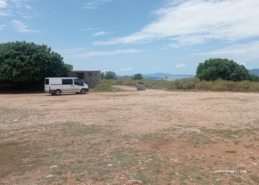 Large parking lot next to the Kalaja e Lëkurësit castle. There are 4 areas for parking, plenty of space in the last section of the climb, so there are plenty of places, during the day the cars come and go to see the castle and at night there is usually no one in high season, beautiful sunset, there is also a garbage container to throw away the waste. To get to the car park you have to climb a hill but it is accessible to all types of vehicles, the only thing is that it is a bit narrow for two vehicles
