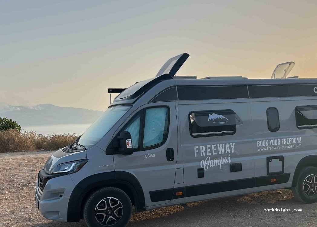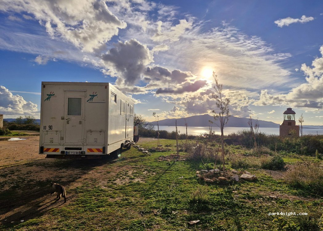 Super spot avec une belle vue sur la mer et sur les montagne en face. OK PL, je n’ai eu aucune difficulté à monter avec le mien (8T - 9m). Ce parking est plus spacieux et plus silencieux que les trois autres (plus haut on entend les echos de la ville).