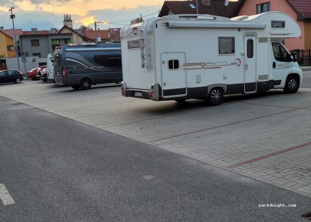 Parking junto a un gimnasio 24 h. muy tranquilo. Ideal para visitar el pueblo. Pasamos noche sin problemas.