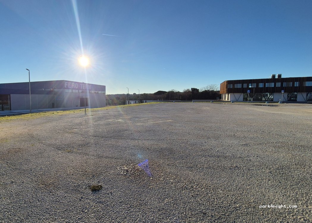 Parking niet aangegeven voor mobilhomes. Gewoon een parking bij een supermarkt. Ok voor boodschappen. Tov een officiële plaats voor 5€ in het laagseizoen met loosmogelijkheden.