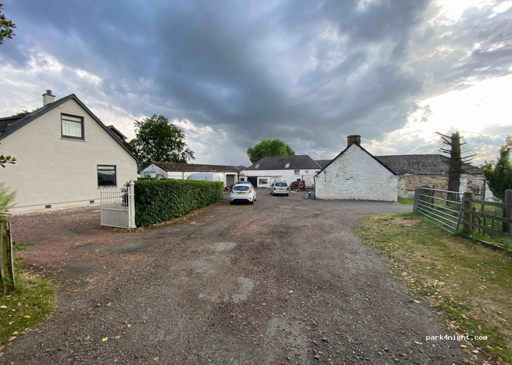 You need to call ahead for availability. Collierhall Farm, close to Lanark - historic city - have good places in a beatiful landscape. Old farm, but the couple that receive us was very nice and gaves all information. 2 of the pitch are in hard basemant, all the others are on grass at a good condition and easy level. Phones to check. Mobile. We pay 20£ autocaravan with electricity and all services included.
