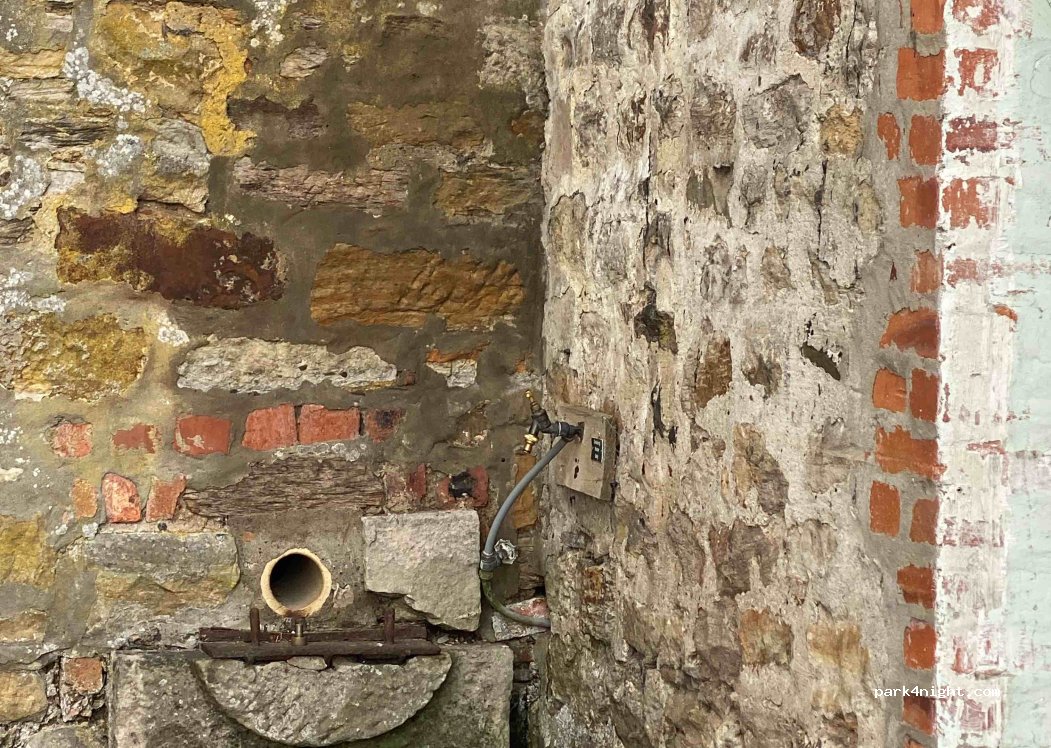 Sanitaires un peu rebutant, pas de possibilité de vaisselle (ce qui est proposé est le robinet de la 2eme photo), mais bon, on peu dormir en sécurité, vider et remplir, la foi pour 20£ c’est déjà pas mal ! Attention, prévoir de l’espèce.