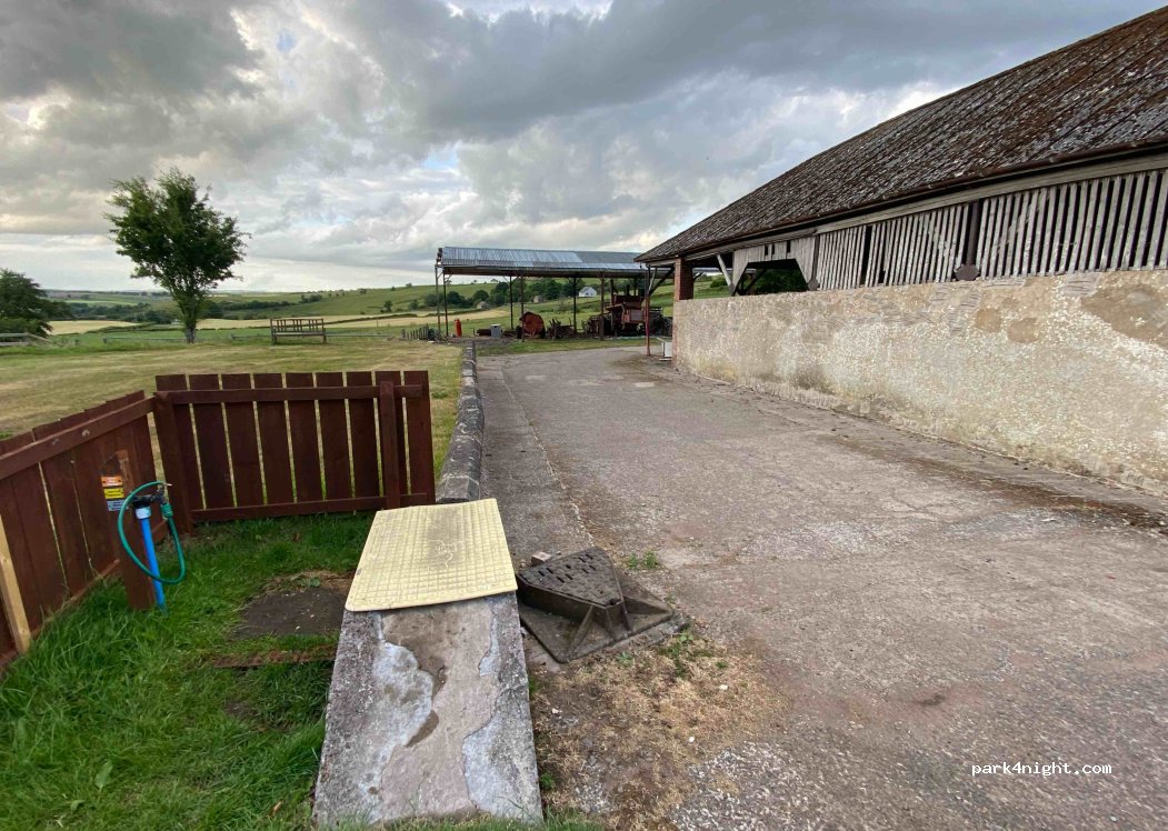 Un camping à la ferme simple mais avec tout ce qu'il faut. Vous pouvez vider les WC chimiques, les eaux grises au même endroit et faire le plein d'eau juste en face. Vous vous installez sur la pelouse et branchez sur secteur si besoin. Le paiement 20 livres se fait soit via sa boîte aux lettres ou bien il vient à vous. Avant de venir n'oubliez pas d'appeler.
