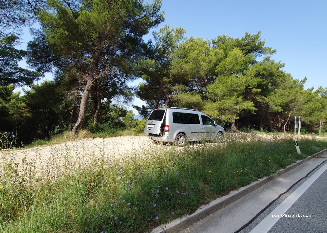 Świetne miejsce, w cieniu drzew przez większość dnia(solary prawie nic nie dają ale za to auto się nie nagrzewa), minuta do plaży na której zazwyczaj jest kilka osób. Spędzone kilka dni, więc jeśli komuś nie przeszkadza spanie przy trochę ruchliwej drodze to polecam.