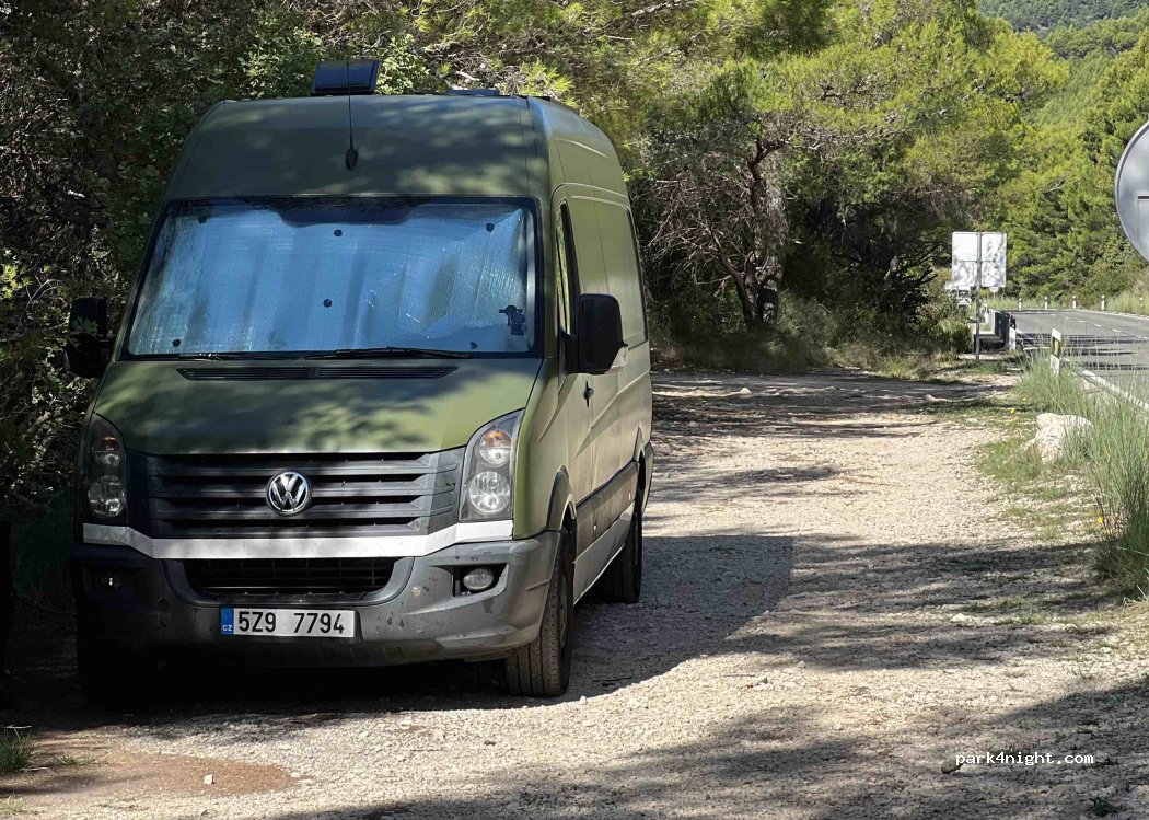Krásné místo! Strávili jsme tu 3 noci a byli jsme moc spokojení. Hned vedle je pláž, která je téměř prázdná – najdete tu klasickou i nudistickou část. Velké plus za klid a soukromí u moře. Místo je přímo u cesty, takže je třeba počítat s tím, že auta jsou slyšet, hlavně přes den. V noci je provoz minimální, ale i tak doporučuji dávat pozor, protože auta tady jezdí opravdu rychle.