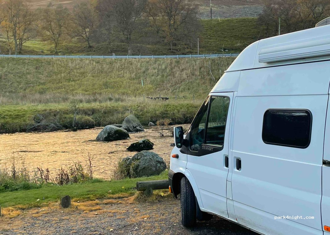 I had a great night at Gella Bridge in Glen Clova. The site was very clean and quiet, perfect for a peaceful getaway. We noticed a bit of road noise in the morning, but it was minimal and didn’t bother us much. Surprisingly, the 4G coverage was good, which was handy. Bins provided in both of the car parks. Overall, it’s a nice spot for a night out in nature.