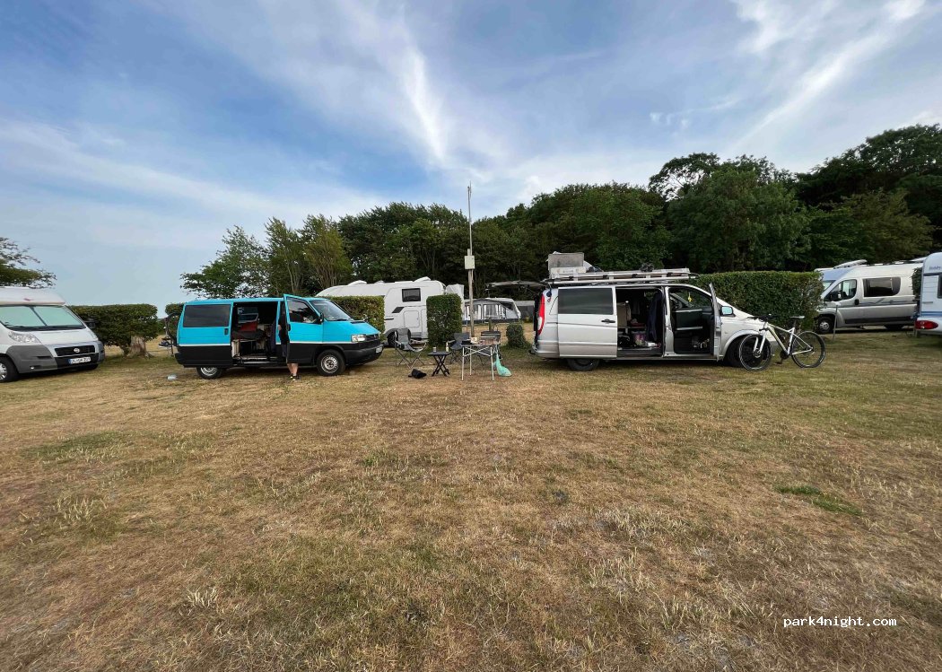 Morso Camping & Hytte. Super nice campsite right on the lake. Quite cheap (cheaper than motorhome pitches in the area). Pitches on a mowed meadow. Showers and toilets are very clean. Free WiFi available everywhere. It is a few meters to the beach.