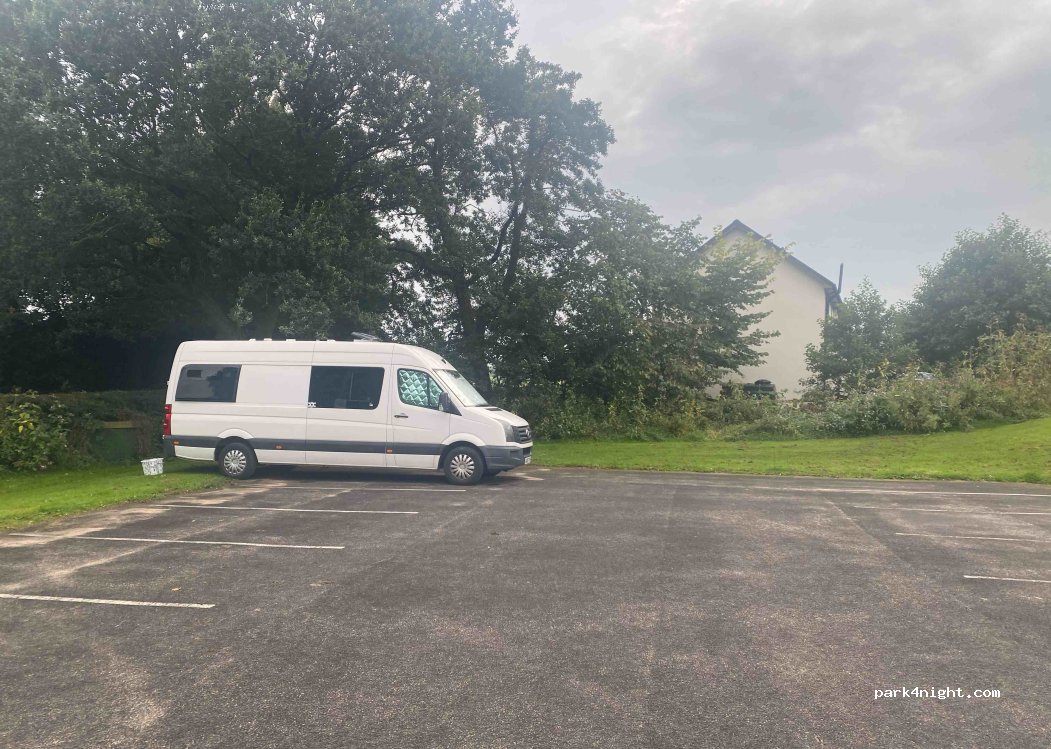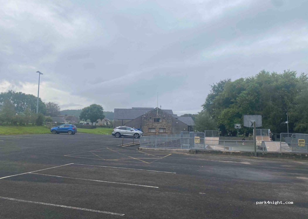 Basic hard standing car park around the back/side of the town hall/local football team. Ideal for a stopover. There is NO height barrier, that is located in the car park with toilet a little further on.