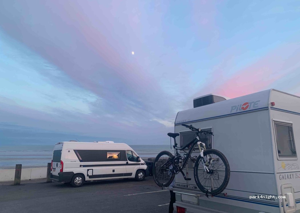 Wat een topplekje om te overnachten als er plek is. Vannacht met ong 7 campers gestaan. Kan moeilijk zijn omdat je pal aan de boulevard staat dus druk met parkeren. Heel gek want plekje ernaast is betaald parkeren. Werden wel verzocht door iemand van ijssalon Scoop of we vandaag wilden vertrekken want het was privé parking?? Beetje vreemd, maar wij belemmerden idd wel zijn uitzicht.