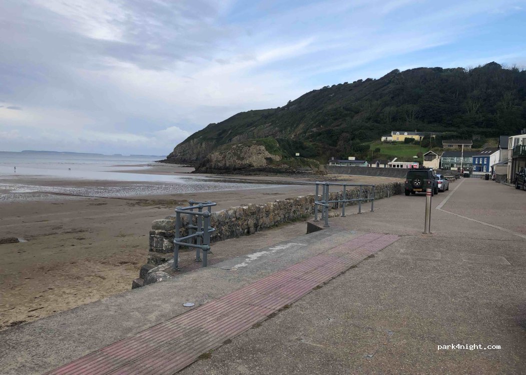 Parking Right by the sea, with pubs, cafes and shops nearby. This car park is free unlike the one next door which is paid. Toilets open 8am-9pm. Beach Shower.